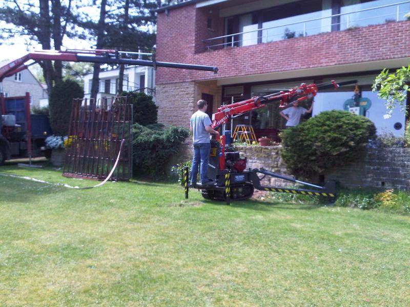 Pose de grands doubles vitrages à l'aide d'une grue et d'une mini-grue.